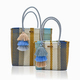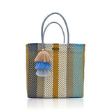 Handcrafted from 100% recyclable plastic by Mexican artisans, this chic tote is created to captivate everyone's eyes with its vibrant colors and trendy, durable design.