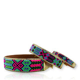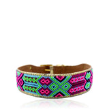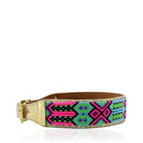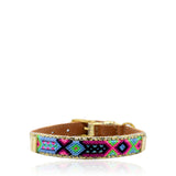 Combining pink, blue and green colors, luxurious gold plated decorations and 2 layers of gold and brown genuine leather, this enchanting accessory will be the perfect addition to your pup’s collection.