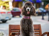 This immaculate purple & pink handmade collar will certainly make both you and your pup the center of attention.