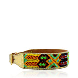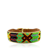That’s exactly what will happen once your pup heads outside wearing this captivating handcrafted collar in yellow, green and red vibrant colors.