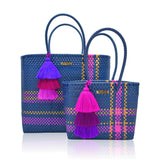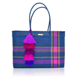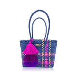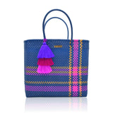 Handcrafted from 100% recyclable plastic by Mexican artisans, this chic tote is created to captivate everyone's eyes with its vibrant colors and trendy, durable design.